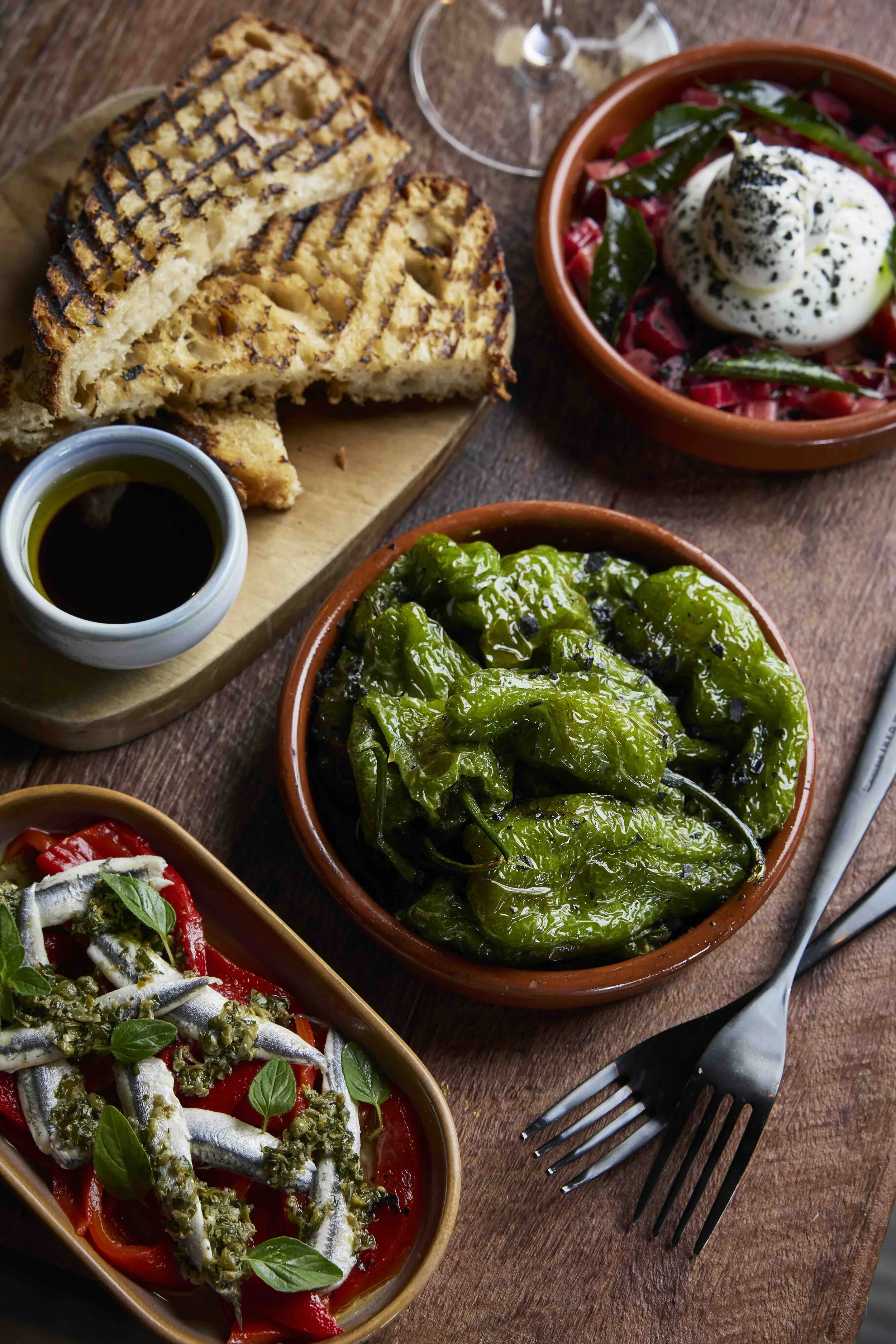 Salsa Roja, Green Oil, Cavolo Nero, Devilled Pecans